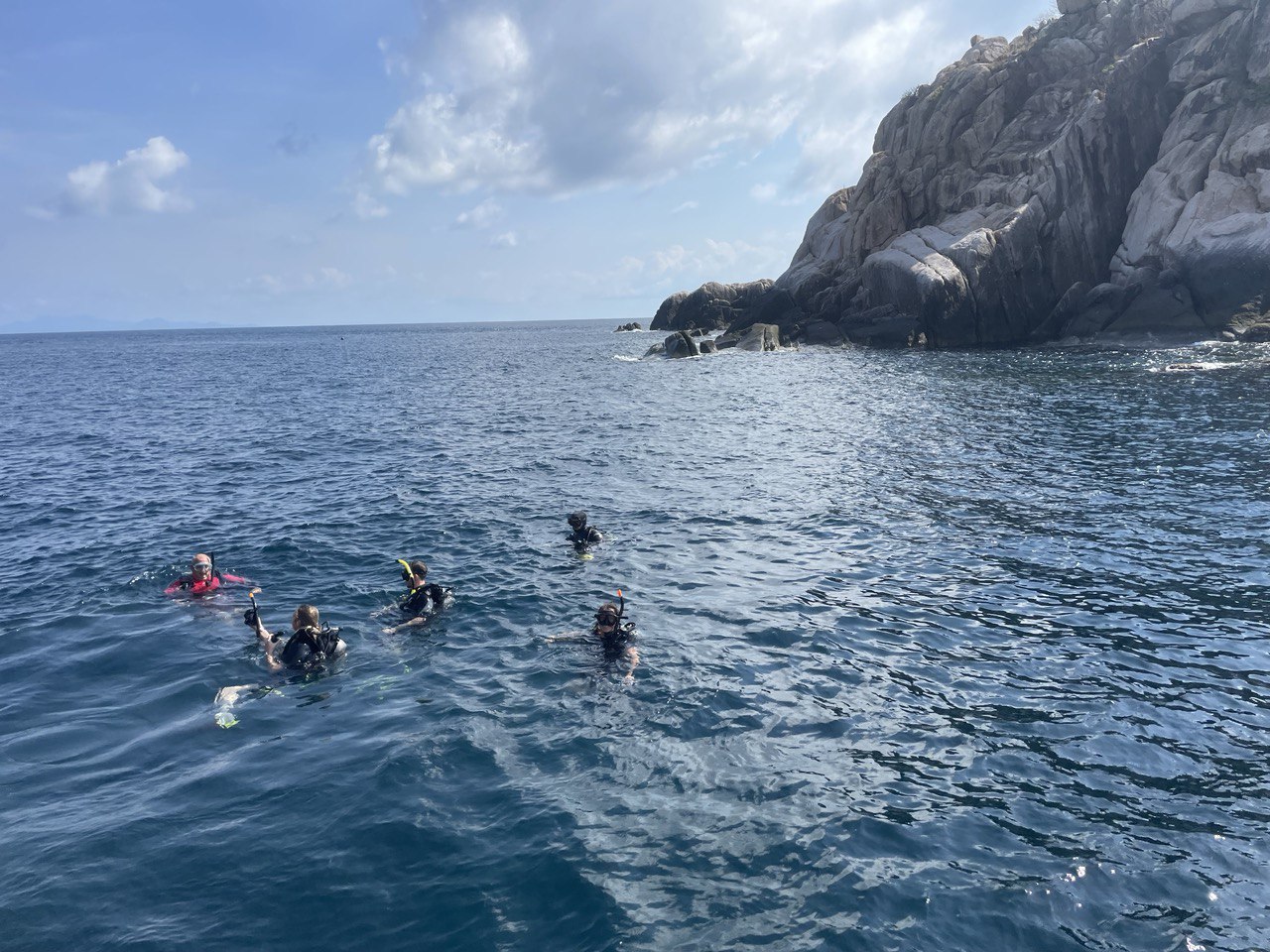 During our first dive, we had to do some of the same skills we did in the pool, but in the ocean which feels a bit more real. As we descended the rope, slowly equalizing our ears, the lady from Vancouver had some serious trouble equalizing and started to panic. The instructor tried to help pull her toward the surface, but because the pain was disorienting her, she thought he was pulling her downward and tried to fight him off. When she was back at surface, she seemed a bit traumatized and even though everyone was very encouraging, she decided to leave the course and head back to the boat. I felt so sad for her.