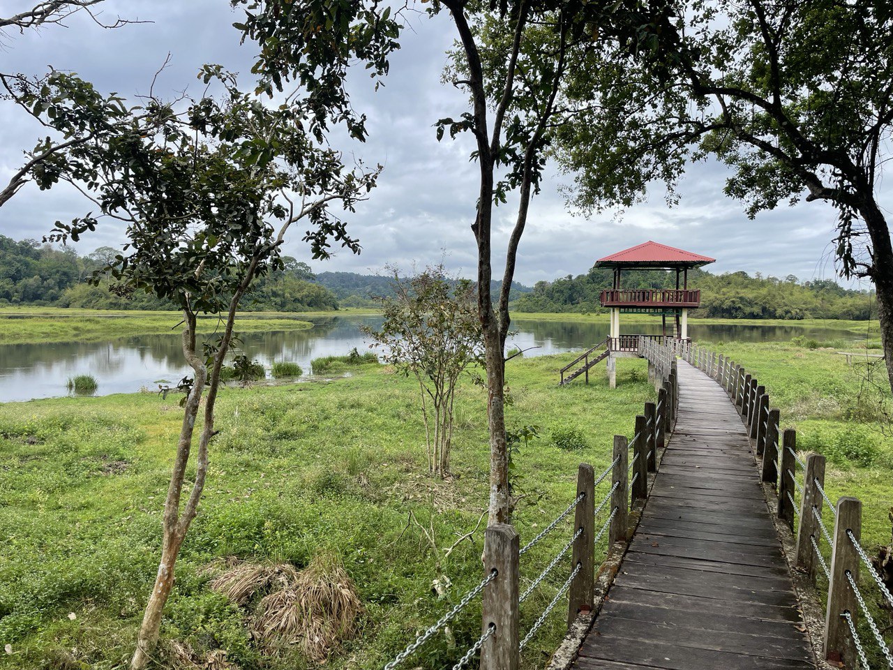 The forest was generally very damp. We stopped at another location to watch the monkeys, and when we started going again i felt a pinch on my ankle. I checked out of confusion, and saw multiple land leeches climbing up my shoes and two already on my ankle. Needless to say, I started freaking out and trying to flick them off, and then I saw more crawling along the forest floor toward me and just started running. Max was trying to run and check his own ankles too, but luckily he had longer socks on. We kept running until we made it to a boardwalk for crocodile lake which was nice and dry, where we could shake out our pants/socks/shoes of leeches and remove the last few from our legs. I had a ring of leech attack blood circles around my ankles right above my socks! I was so happy we had made it to crocodile lake.